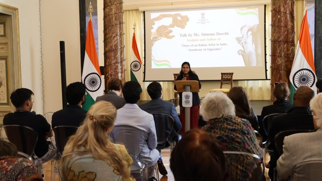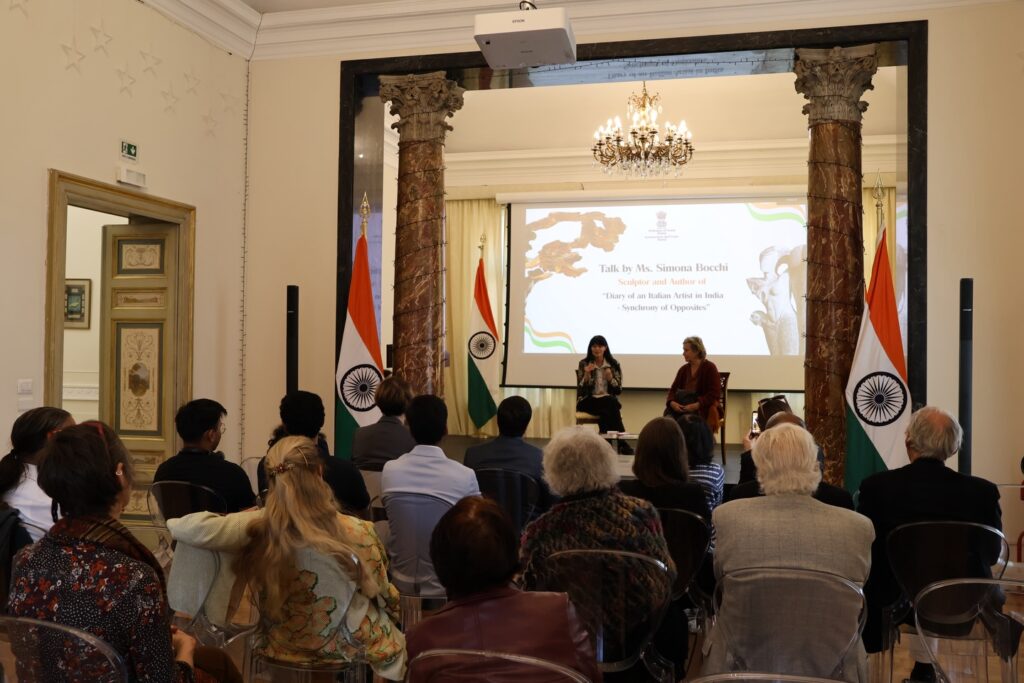 The highlight of the evening was Simona Bocchi, a sculptor and author, who presented her book “Diary of an Italian Artist in India – Synchronicity of Opposites.” The book is an autobiographical work that shares her personal experiences and artistic journey in India.