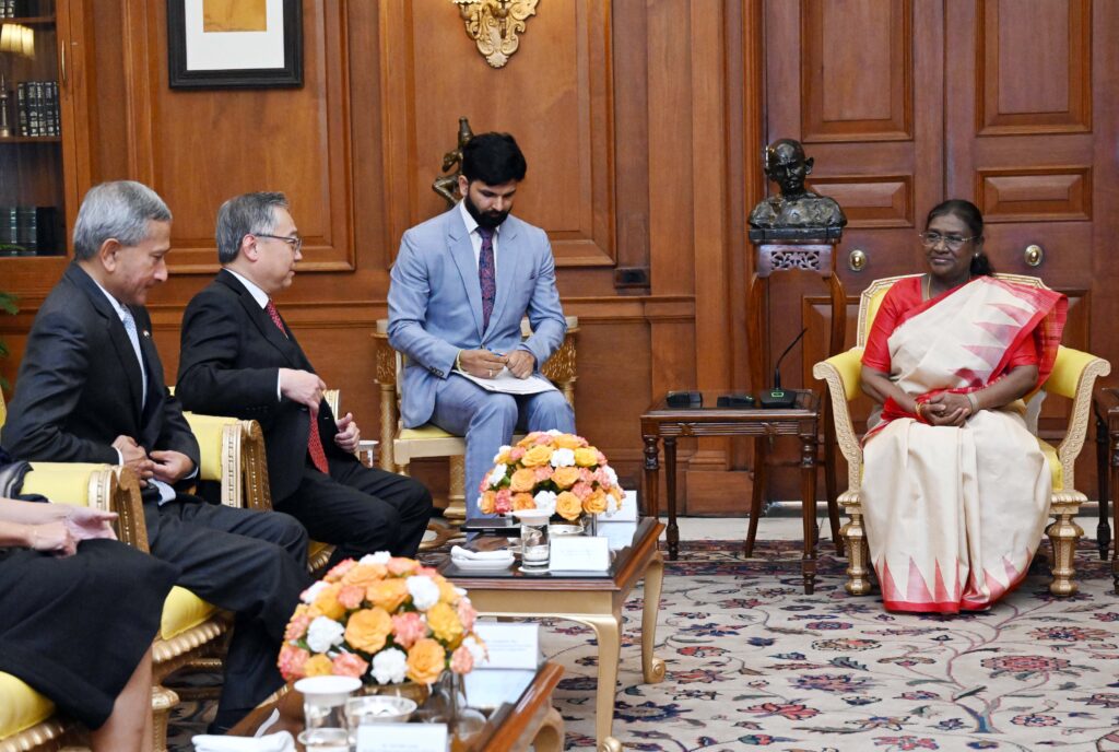 President Droupadi Murmu met Singapore’s Deputy Prime Minister Gan Kim Yong at Rashtrapati Bhavan on August 13, 2025, during his visit for the India-Singapore Ministerial Roundtable.