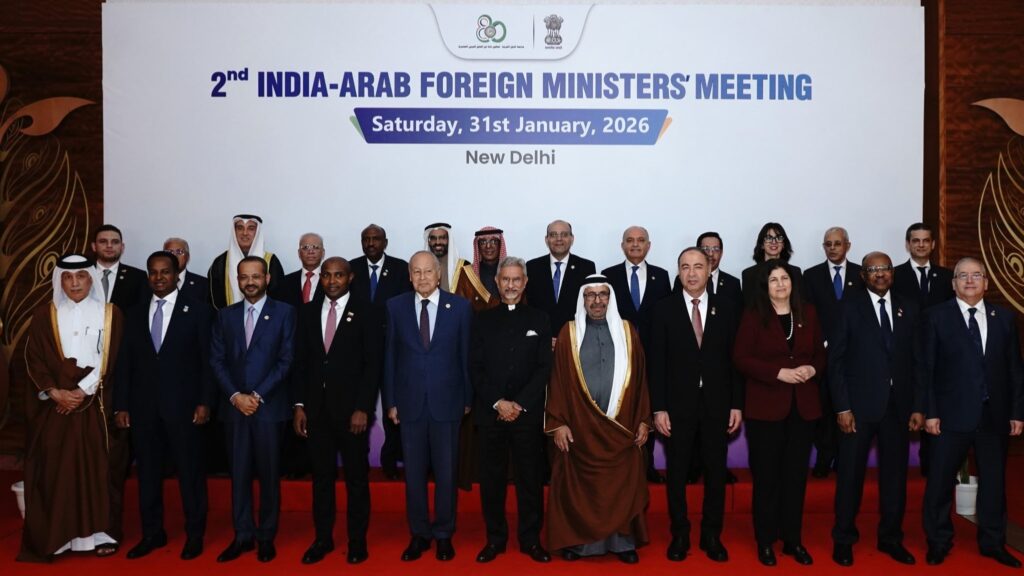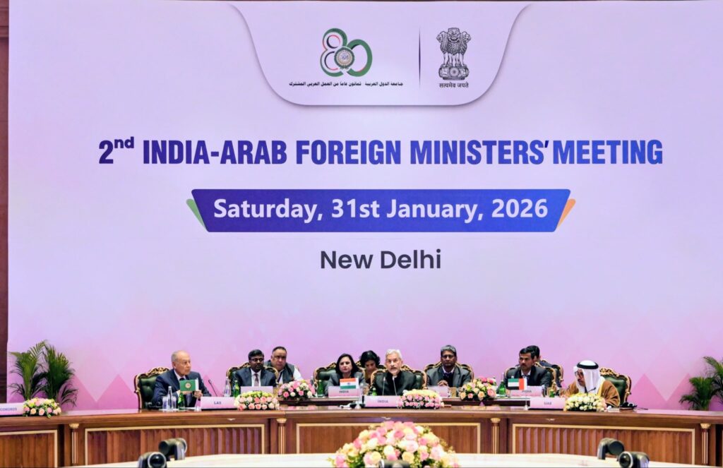 India hosted the 2nd India-Arab Foreign Ministers’ Meeting (IAFMM) on 31 January 2026 in New Delhi, co-chaired by India and the United Arab Emirates. The meeting brought together Foreign Ministers of all 22 Arab League member states and the League of Arab States Secretary-General. The Ministerial meeting followed the 4th India-Arab Senior Officials’ Meeting, held on 30 January 2026.