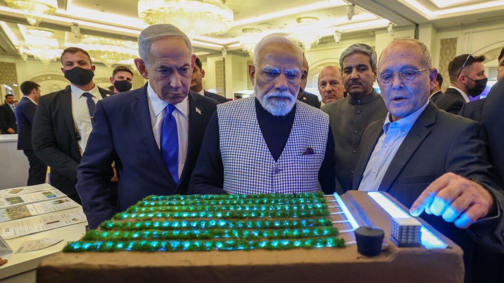 Prime Minister Narendra Modi and Israeli Prime Minister Benjamin Netanyahu tour a technology exhibition in Jerusalem, highlighting cooperation in AI, quantum tech, agriculture, and cybersecurity.