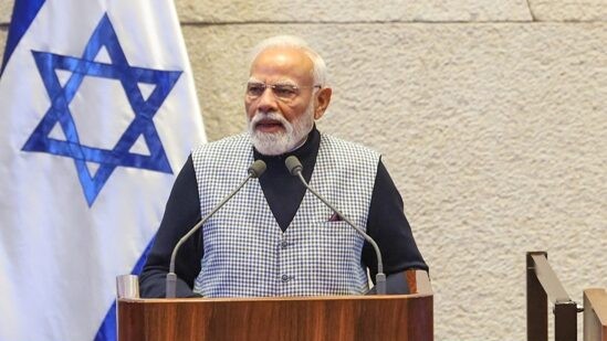 Indian Prime Minister Narendra Modi speaks at the Knesset in Jerusalem, expressing solidarity with Israel and calling for peace, cooperation, and stronger bilateral ties.