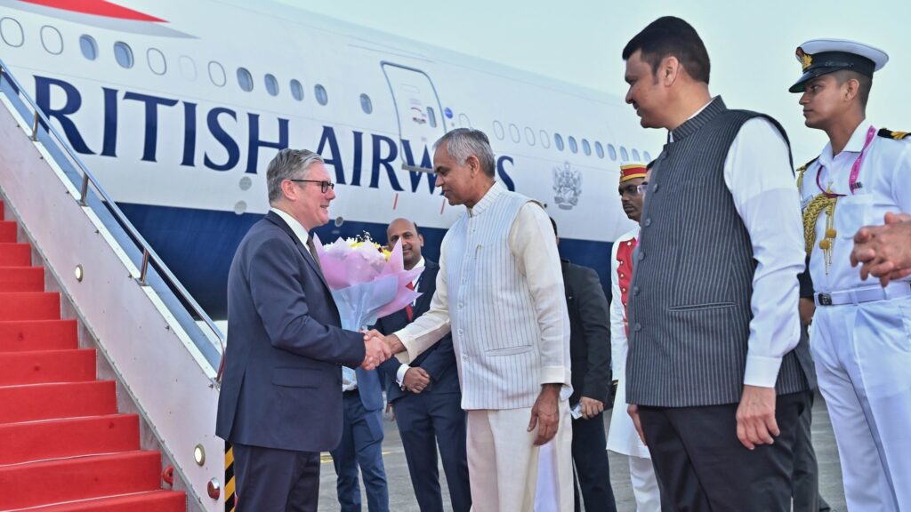 British Prime Minister Sir Keir Starmer received a warm welcome in Mumbai by the Governor of Maharashtra and Gujarat, Shri Acharya Devvrat, marking the start of his two-day visit to India.