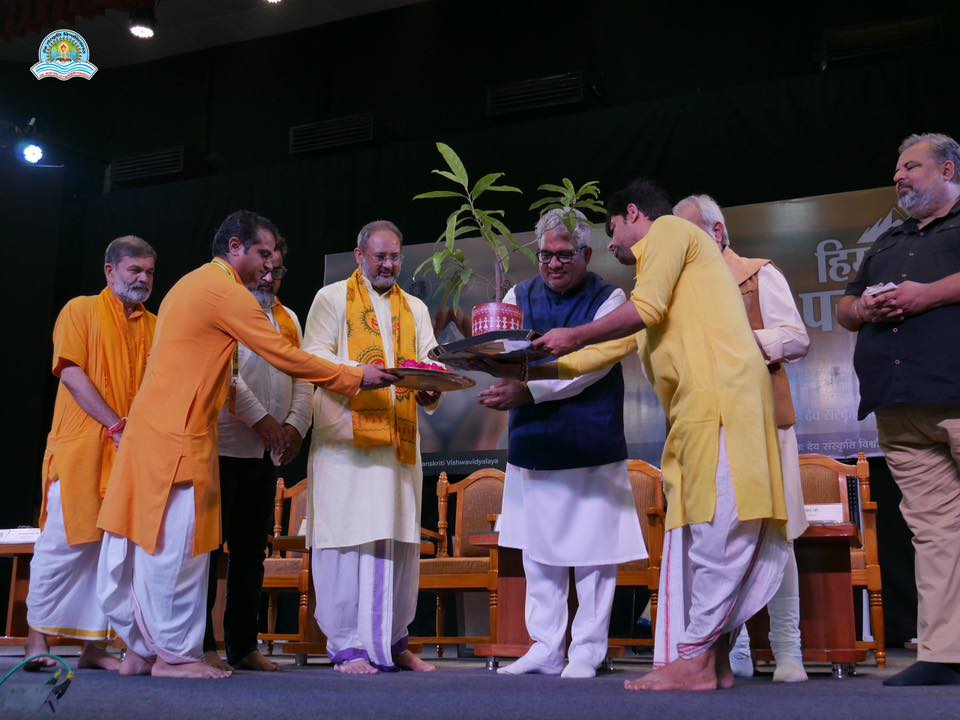 The event began with a warm welcome by Dr. Chinmay Pandya, Pro-Vice Chancellor of Dev Sanskriti University, and Vice Chancellor Shri Sharad Pardhi, who honored the distinguished guests with floral tributes.